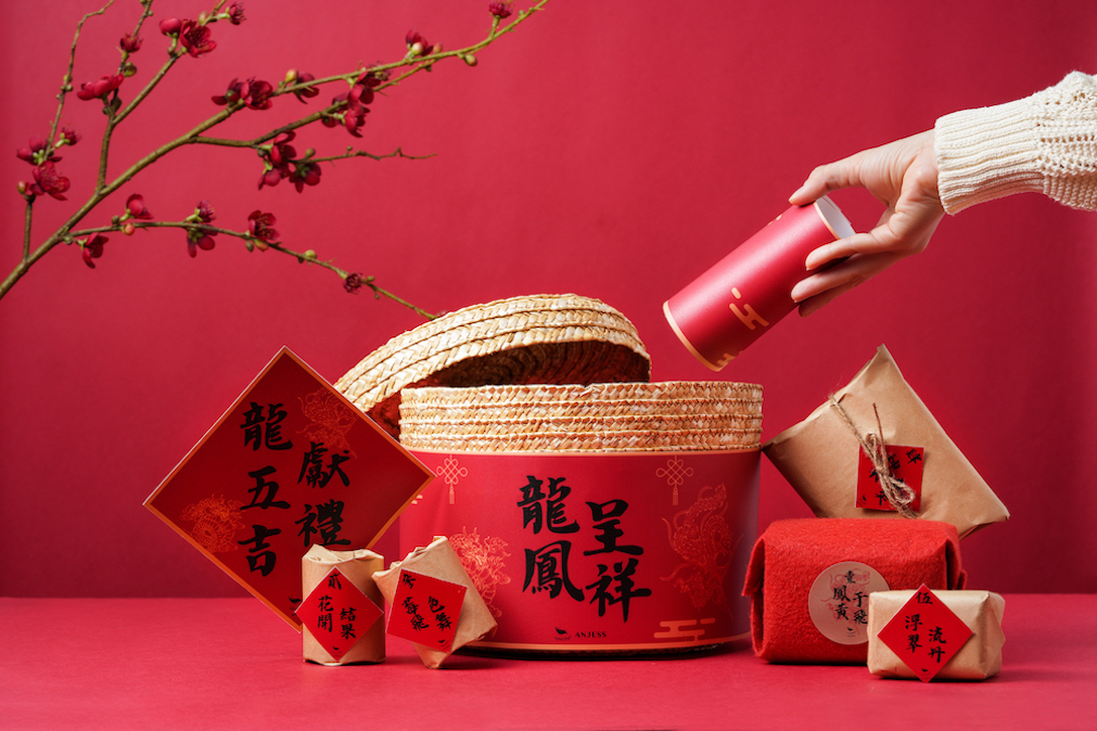 每個人的嘴和心,圓形編織籃禮盒外觀,象徵新的一年