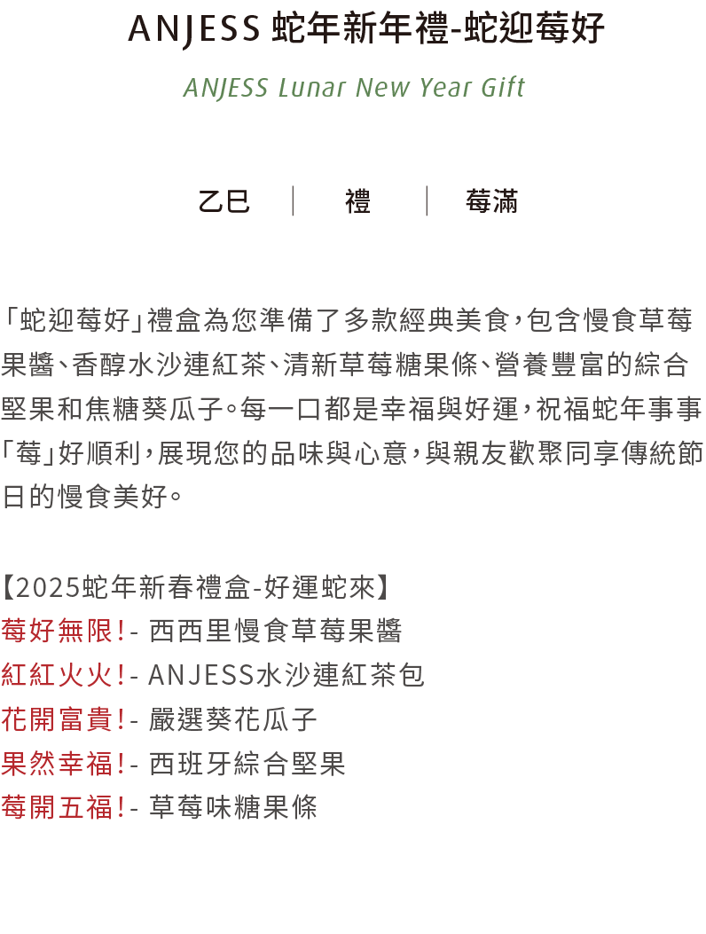 每口都是幸福與好運,祝福蛇年事事「莓」好順利,展現您的品味與心意,與親友同享傳統節日的慢食美好。