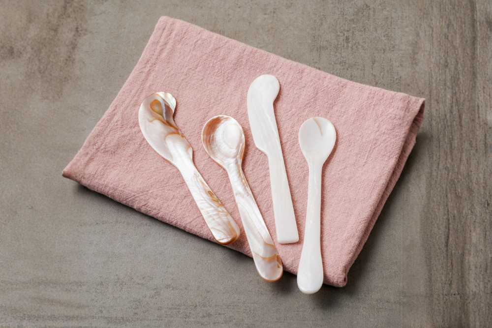 可加購 珍珠母貝抹刀(白/粉),由澳洲高級珍珠母貝手工打磨而成,溫潤手感與天然光澤,為餐桌增添優雅層次。