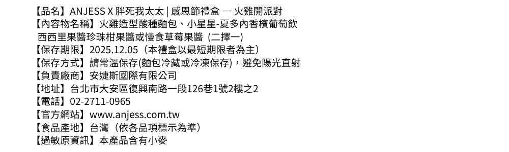 ANJESS 推出感恩節限量禮盒《火雞開派對》