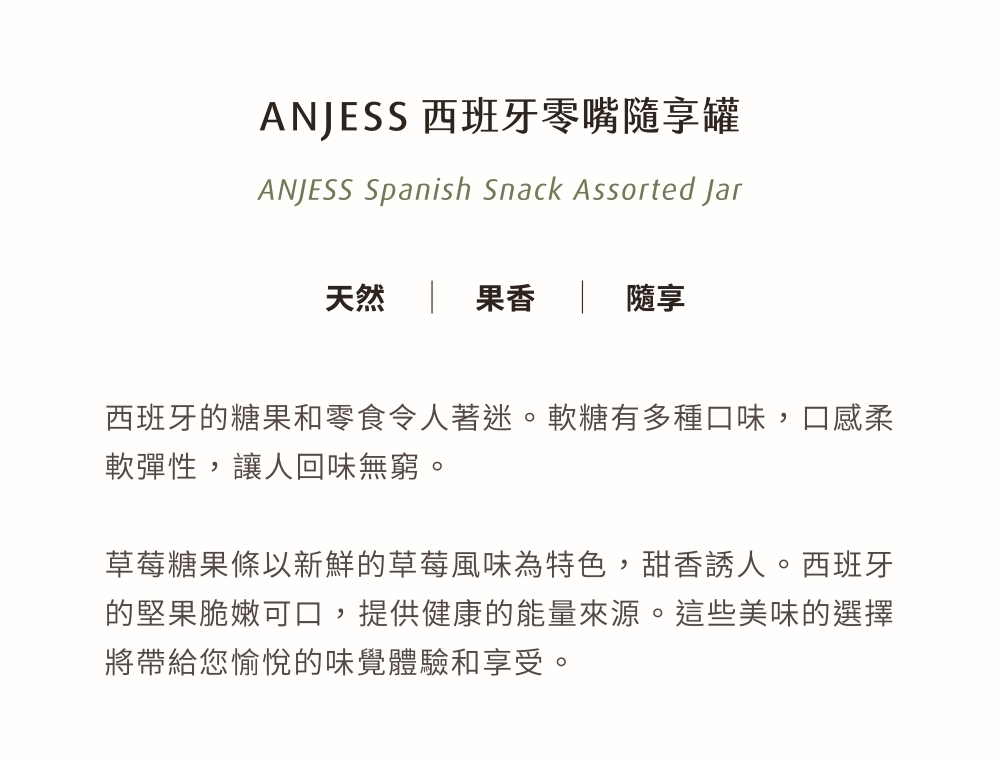 ANJESS這次為您帶來有趣、好玩,且容易入手的西班牙零食小點