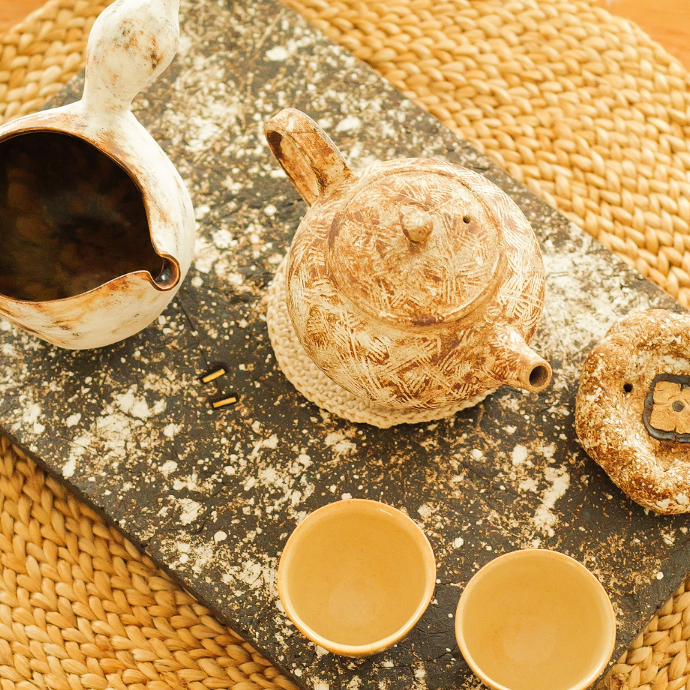 採用手工拉坯成型,並以化妝土裝飾表現肌理層次,經1320度高溫燒成,質地厚實而內斂,展現陶土最原始且深刻的魅力。