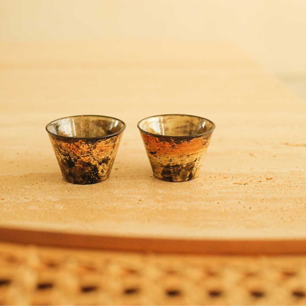 層層堆疊的顏色,交織出風格濃烈、個性鮮明的視覺層次;每一只杯子都因燒成條件與流釉變化而略有不同,保留手作陶器獨有的不完美與張力。握在手中沉穩安定,適合靜靜品飲,讓日常多一分專注與沈澱。